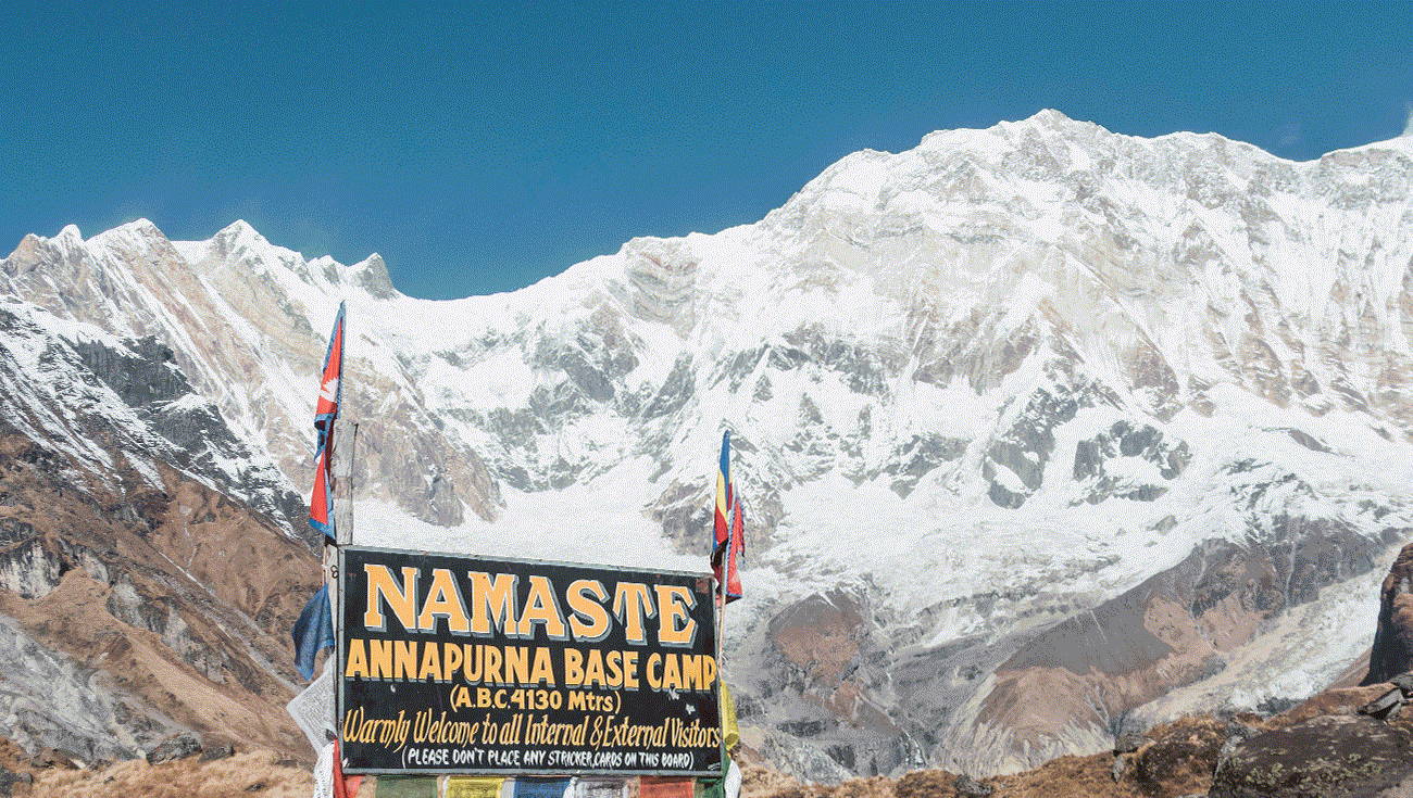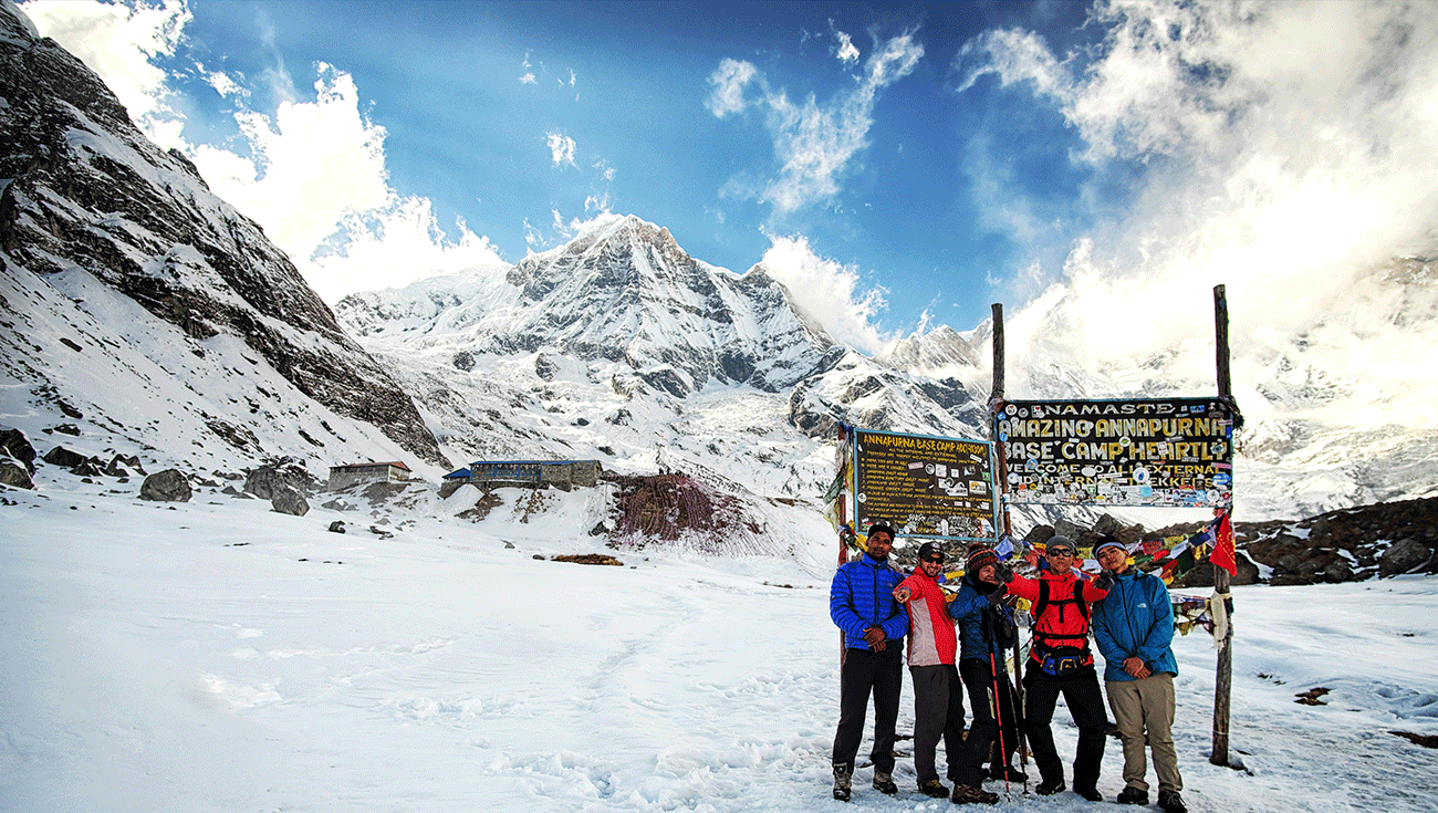 We reach Annapurna Base Camp, located at 4,130 meters, surrounded by a spectacular