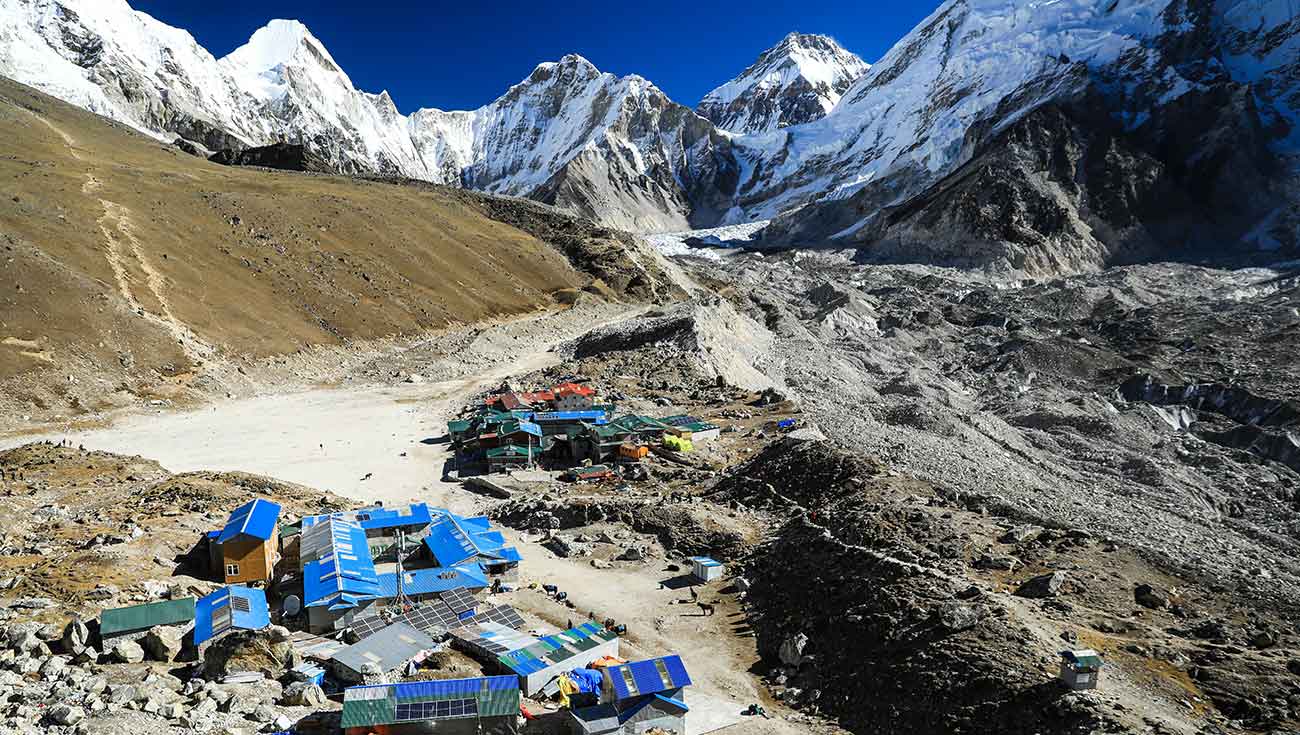 The trek continues towards Gorak Shep, the last settlement before Everest Base Camp. From here, you proceed to Everest Base Camp, the highlight of the journey. After spending time at Base Camp, you return to Gorak Shep for overnight stay.